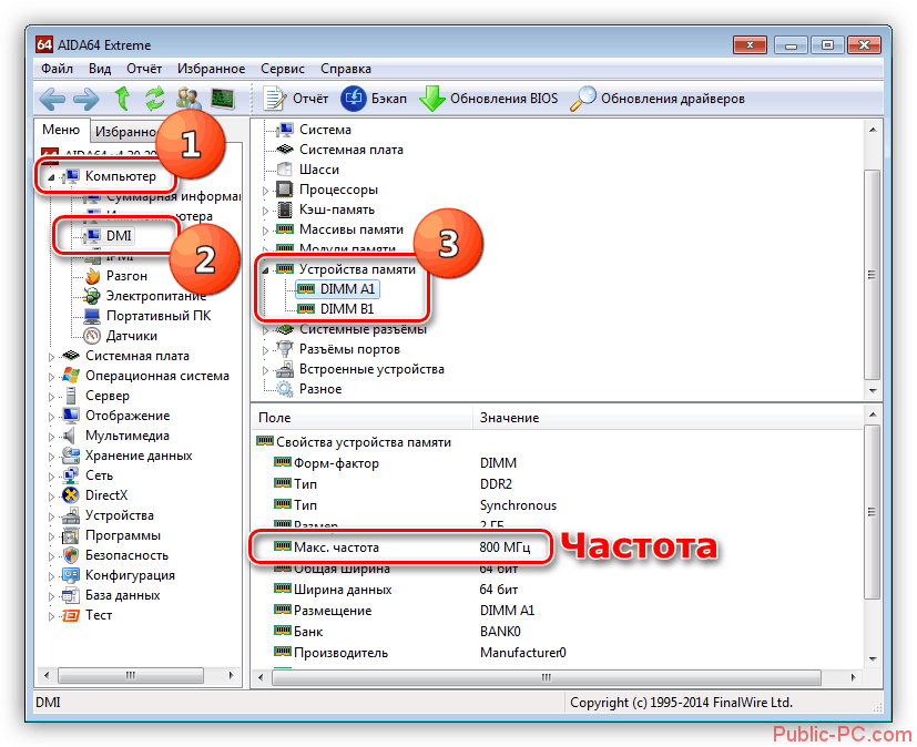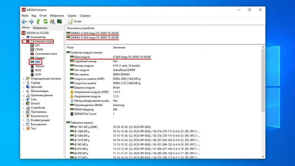 В AIDA64 есть и другой способ, позволяющий увидеть сразу таковые частоты всех планок ОЗУ, встроенных в компьютер. Суть его в следующем: