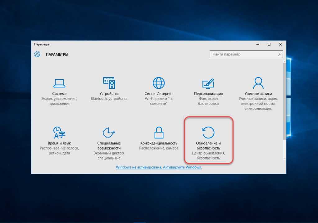 Есть и второй способ. Откройте Параметры и перейдите в раздел Обновление и безопасность.