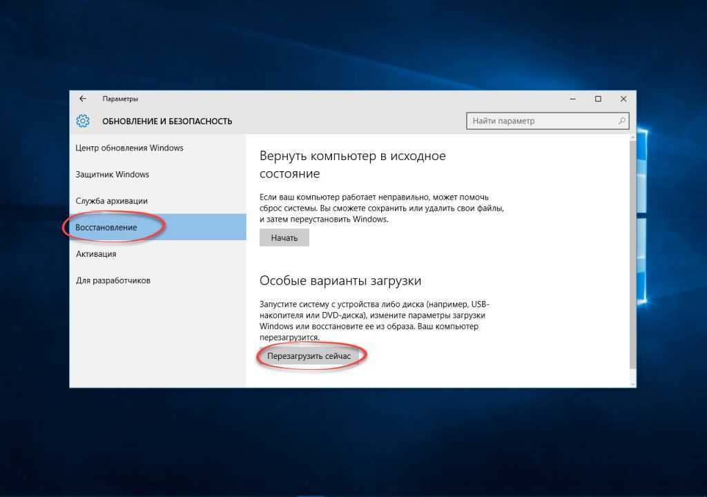 Щелкните по пункту вертикального меню Восстановление. Под заголовком Особые варианты загрузки кликните Перезагрузить сейчас.