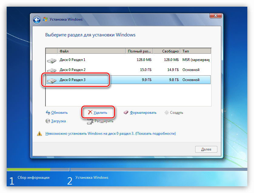 В процессе инсталляции мы неизбежно столкнемся с еще одним препятствием – несовместимостью «семерки» и GPT-дисков. Решается эта проблема несколькими способами. Наиболее быстрым является конвертирование в MBR непосредственно в программе установки Windows с помощью «Командной строки» и консольной дисковой утилиты. Есть и другие варианты, например, предварительное создание загрузочного носителя с поддержкой UEFI или банальное удаление всех имеющихся на диске разделов.