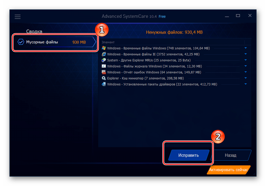 После выполнения сканирования система покажет вам все мусорные файлы. Нажмите кнопку «Исправить» для очистки.