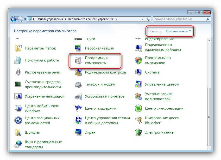 - Найти пункт «Программы и компоненты» и перейти в него.