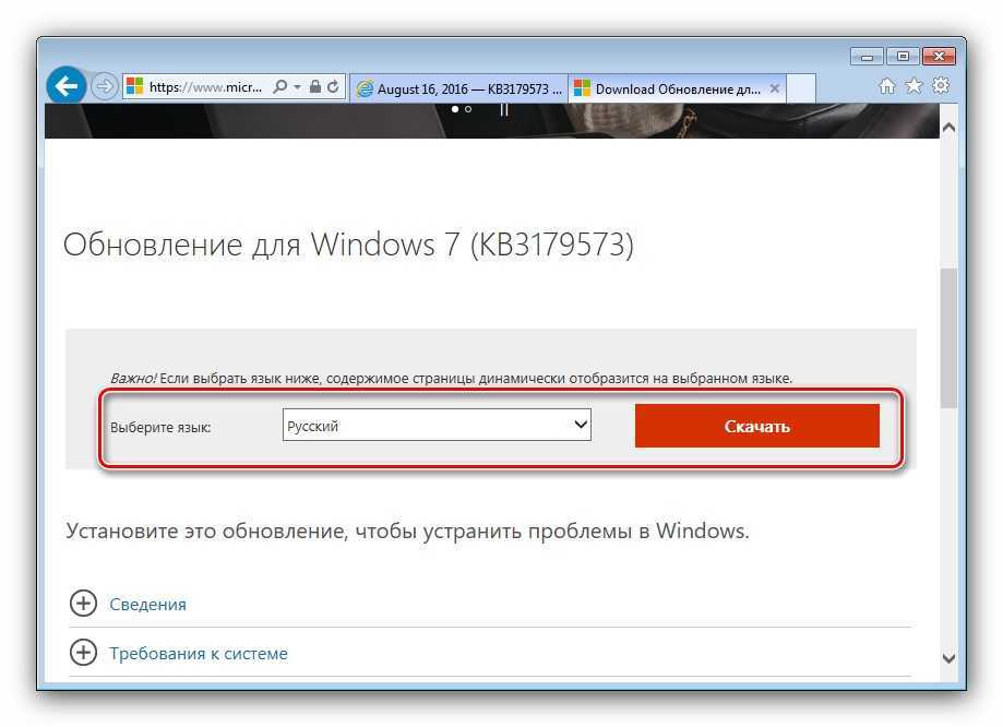 Альтернативный вариант инсталляции требуемых обновлений — самостоятельная их загрузка пользователем и последующая установка вручную по одному.