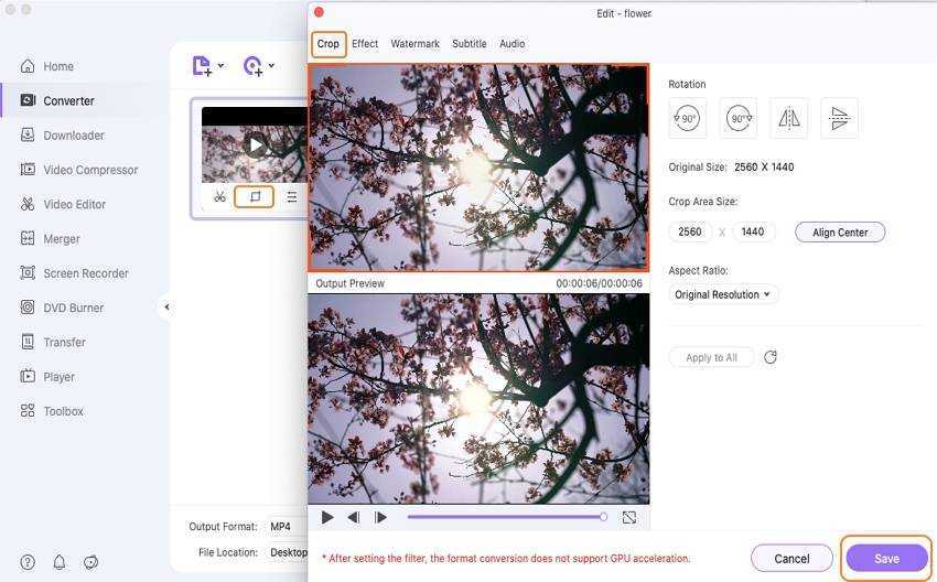 Часть 4. Как редактировать видео GoPro с помощью Wondershare UniConverter на Mac