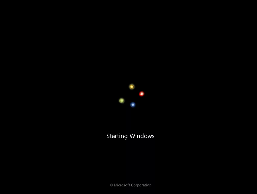 Речь пойдет именно о таком зависании запуска Windows, когда мы видим такую картинку:
