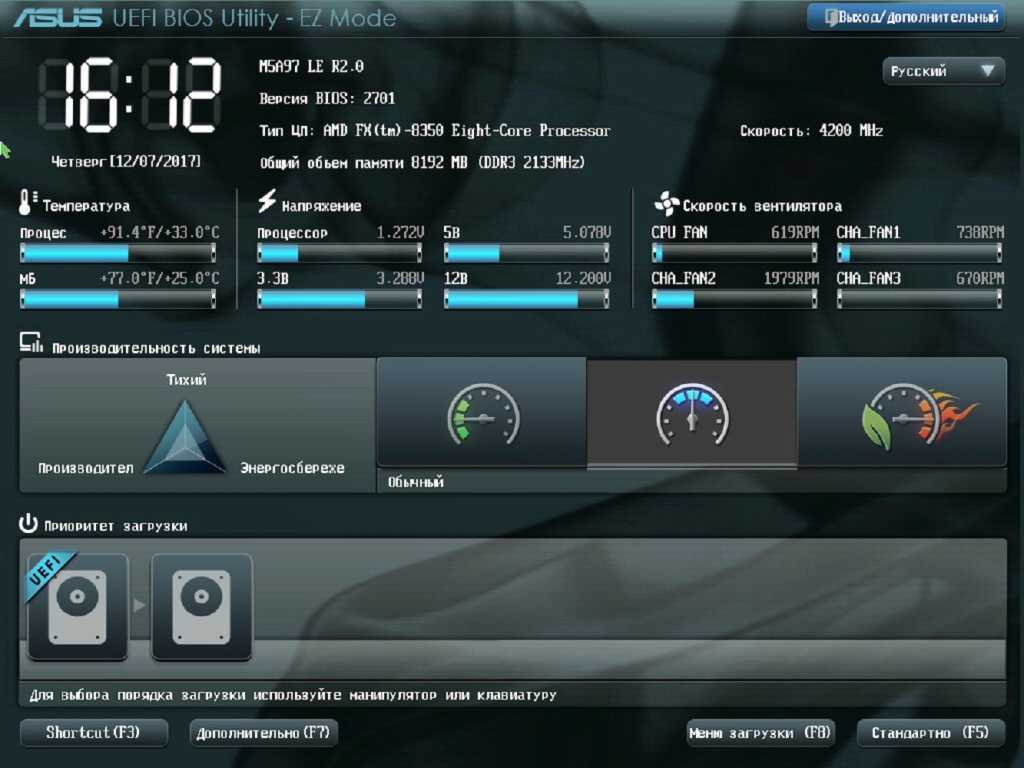 В остальном процедура практически не имеет сильных отличий, если сравнивать с традиционным БИОСом. Сам процесс выглядит так: