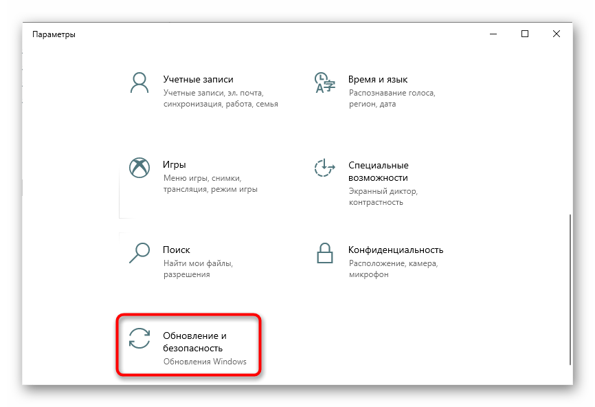 Опуститесь вниз и выберите плитку «Обновление и безопасность».