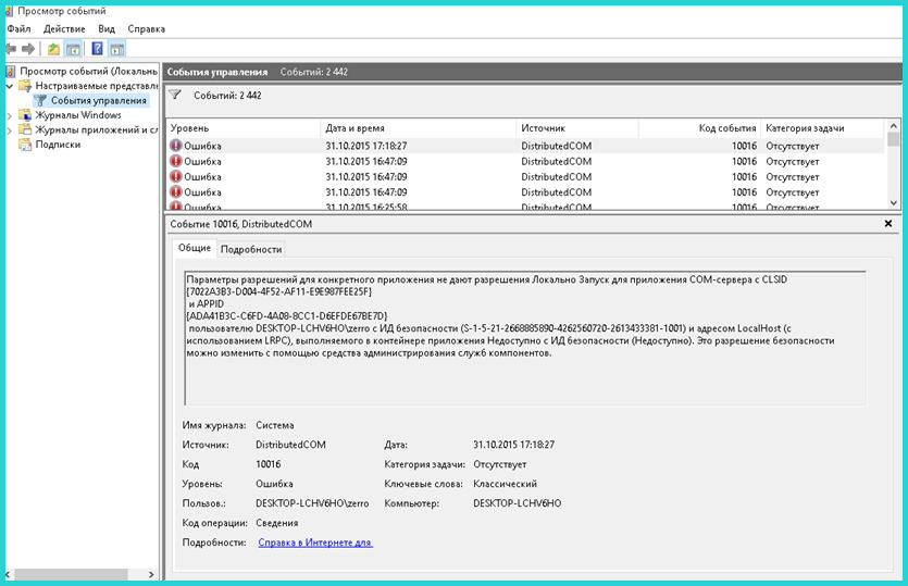 События с идентификатором 10016 записываются в журнал событий, когда компоненты Microsoft обращаются за доступом к компонентам DCOM без требуемых в этом случае разрешений.