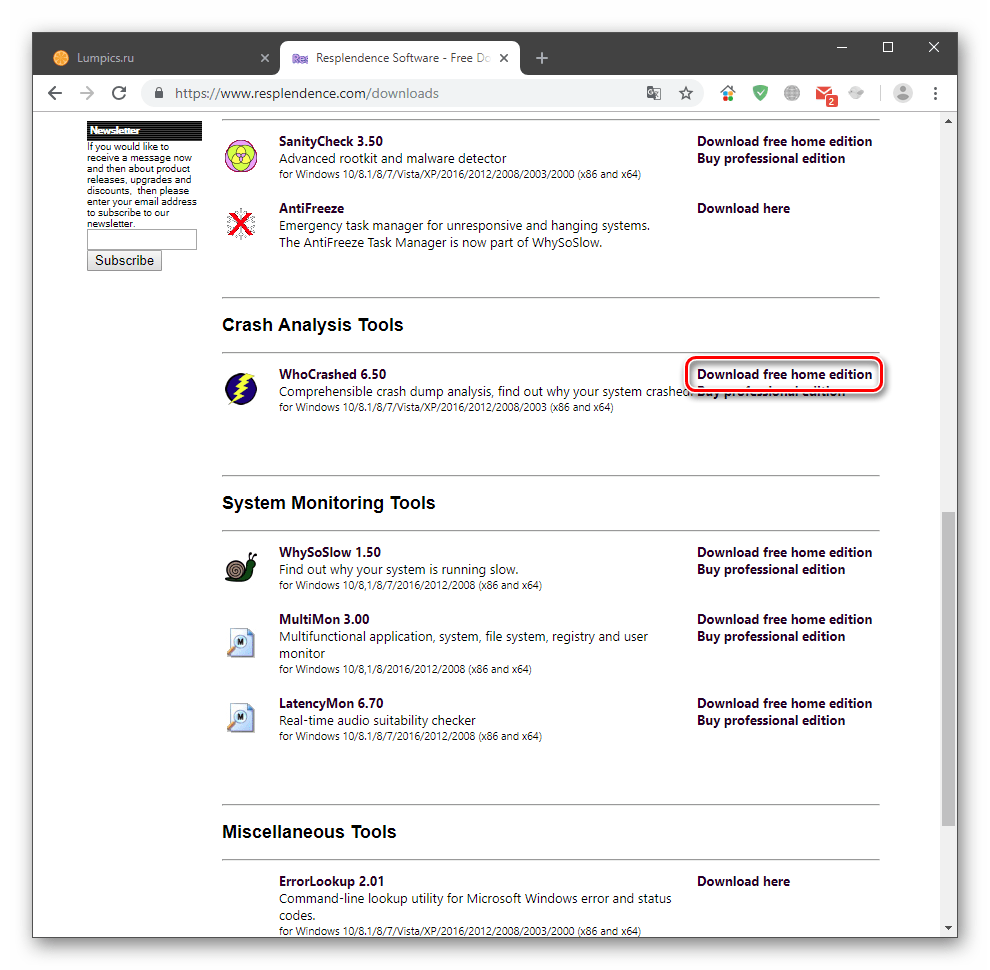 Теперь нужно установить WhoCrashed и дождаться возникновения очередного BSOD.