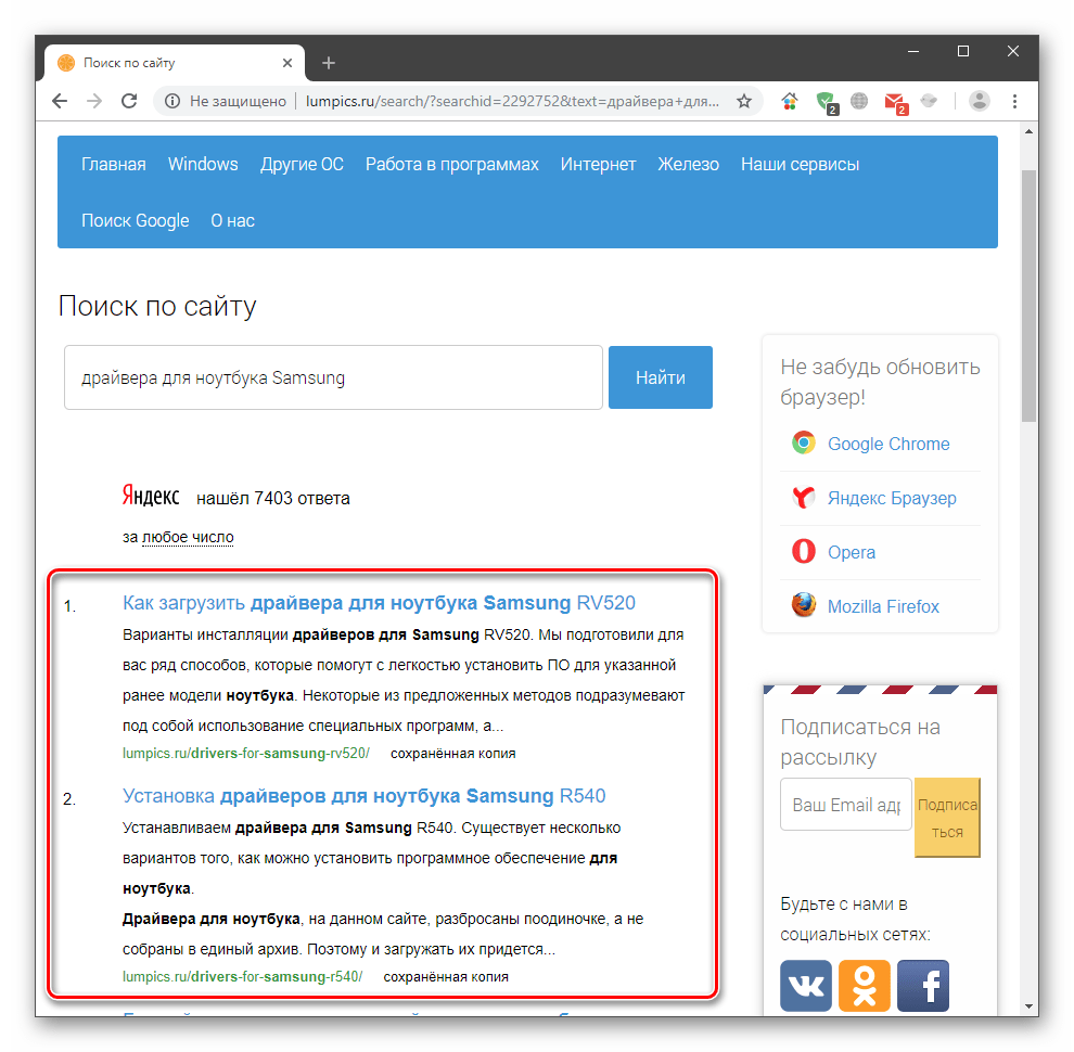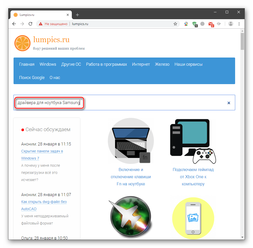 На нашем сайте собраны статьи с инструкциями по поиску и установке драйверов на лэптопы большинства известных брендов. Найти их можно по запросу в поисковой строке на главной странице.