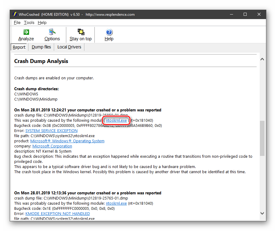 В том случае, если у вас стационарный компьютер или переустановка ПО не помогла, придется выявить и удалить «плохой» драйвер вручную. Для этого нам понадобится программа WhoCrashed.