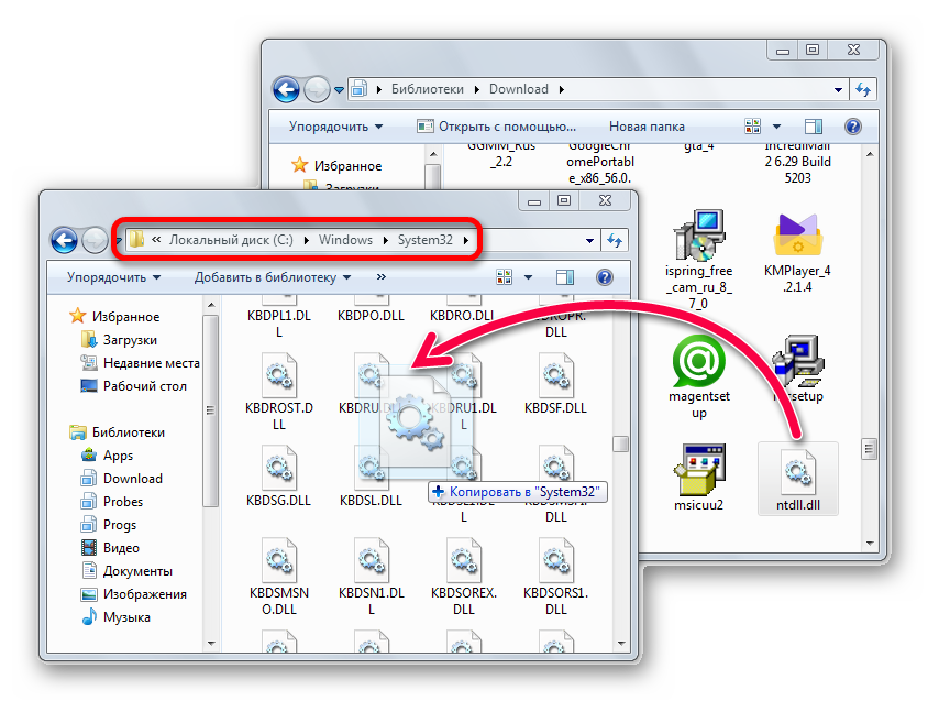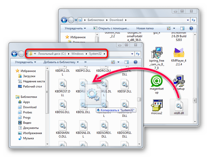 Чтобы самому, без сторонних программ, установить DLL файл, понадобится для начала загрузить его с какого-либо сайта, предлагающего такую возможность. После того как загрузка будет окончена и файл окажется в папке для скачивания, все что вам останется сделать — это переместить его по адресу: